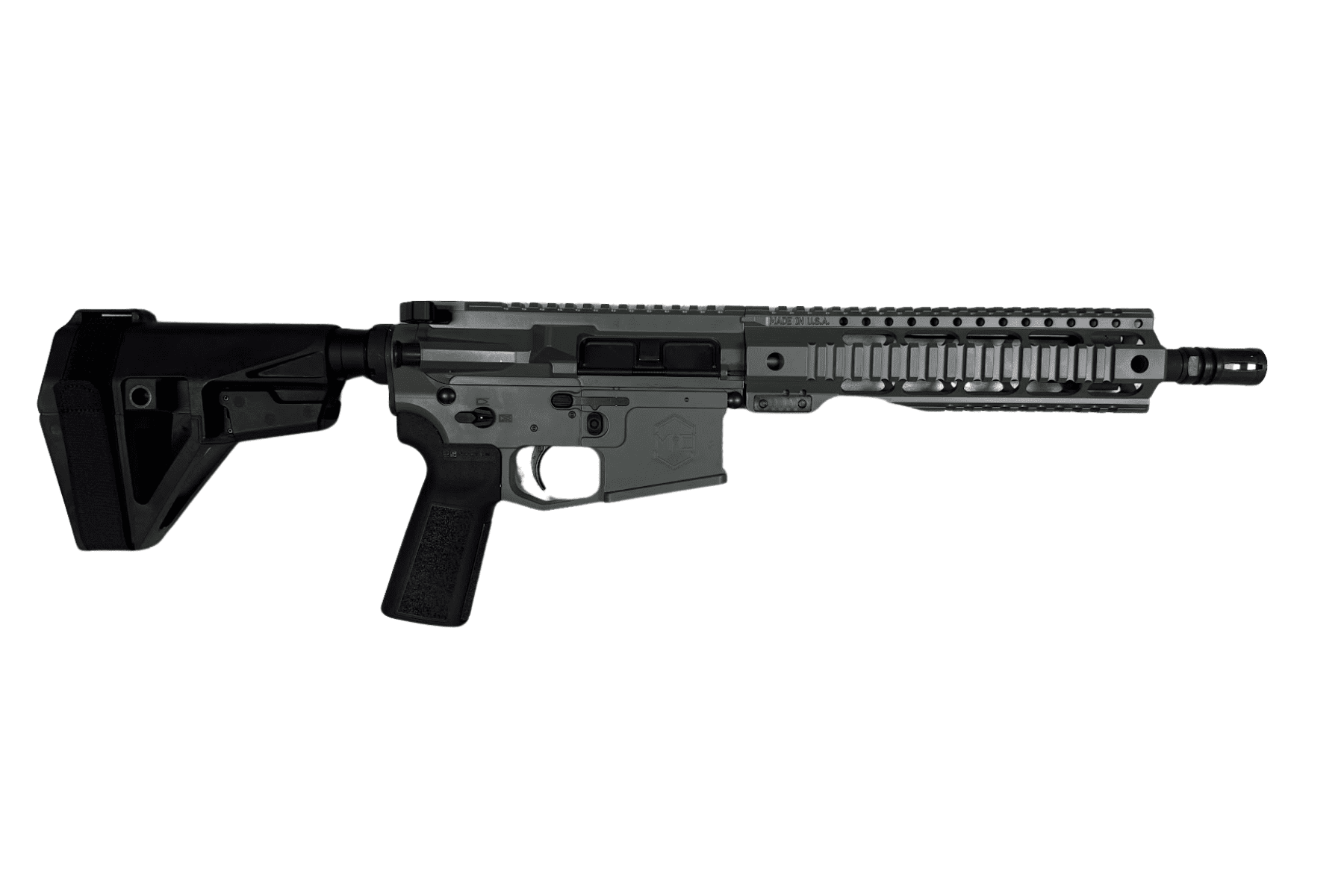 Engineered for close-quarters combat, law enforcement, and tactical operations, our AR Pistol is designed to be fired with one hand while using the pistol brace attached to the forearm. Its compact size and exceptional maneuverability make it ideal for scenarios where rapid target acquisition and quick handling are essential. The AR Pistol is also a top choice for home defense and personal protection, offering ease of use and effectiveness in confined spaces. Please note that all NFA rules apply.